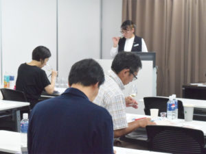 日本酒・焼酎ソムリエ、すなわち、酒類提供者に必要な心構えや能力、そして、必要な学習項目などを学習。