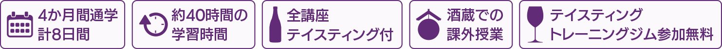 ・欠席の場合、オンデマンド受講(録画配信方式)でフォロー可能(但し、酒蔵での課外授業など一部の授業を除く)。